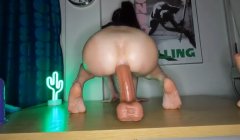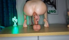 Ненасытная красотка скачет на резиновом члене и стонет от удовольствия